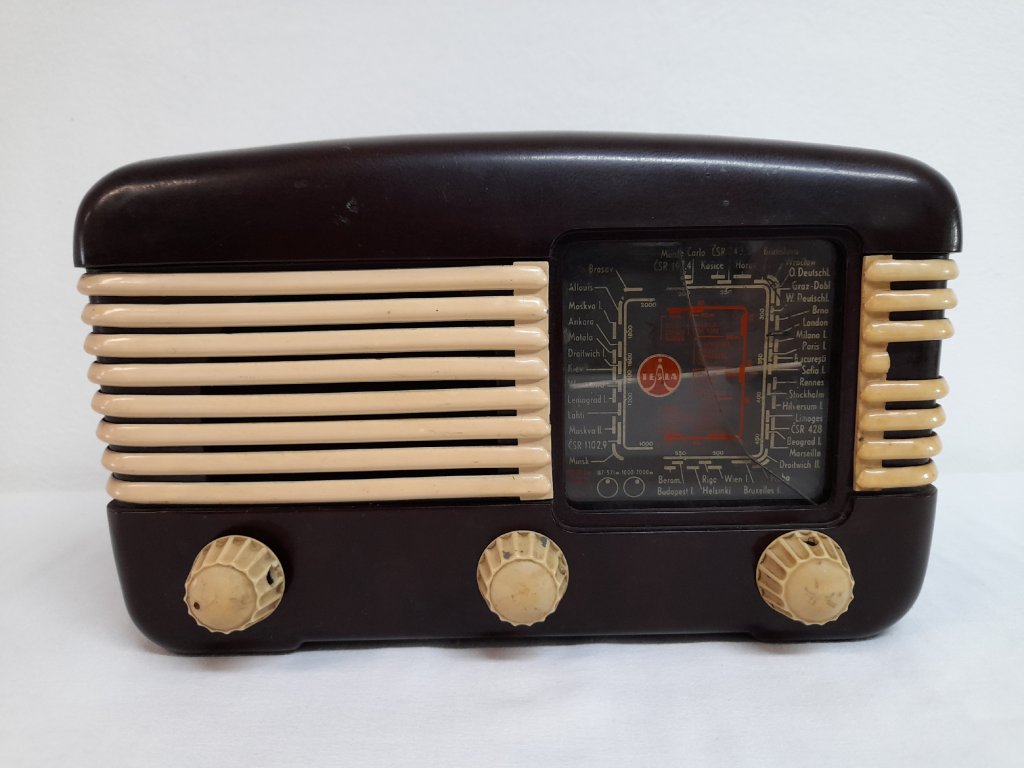 Československo, Talisman, Tesla, šířka 26 cm, výška 16 cm, hloubka 14 cm, poškozené, nefunkční.