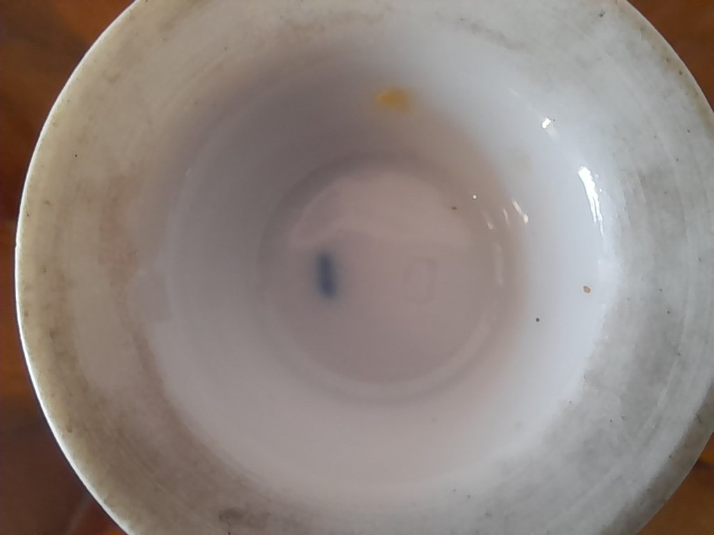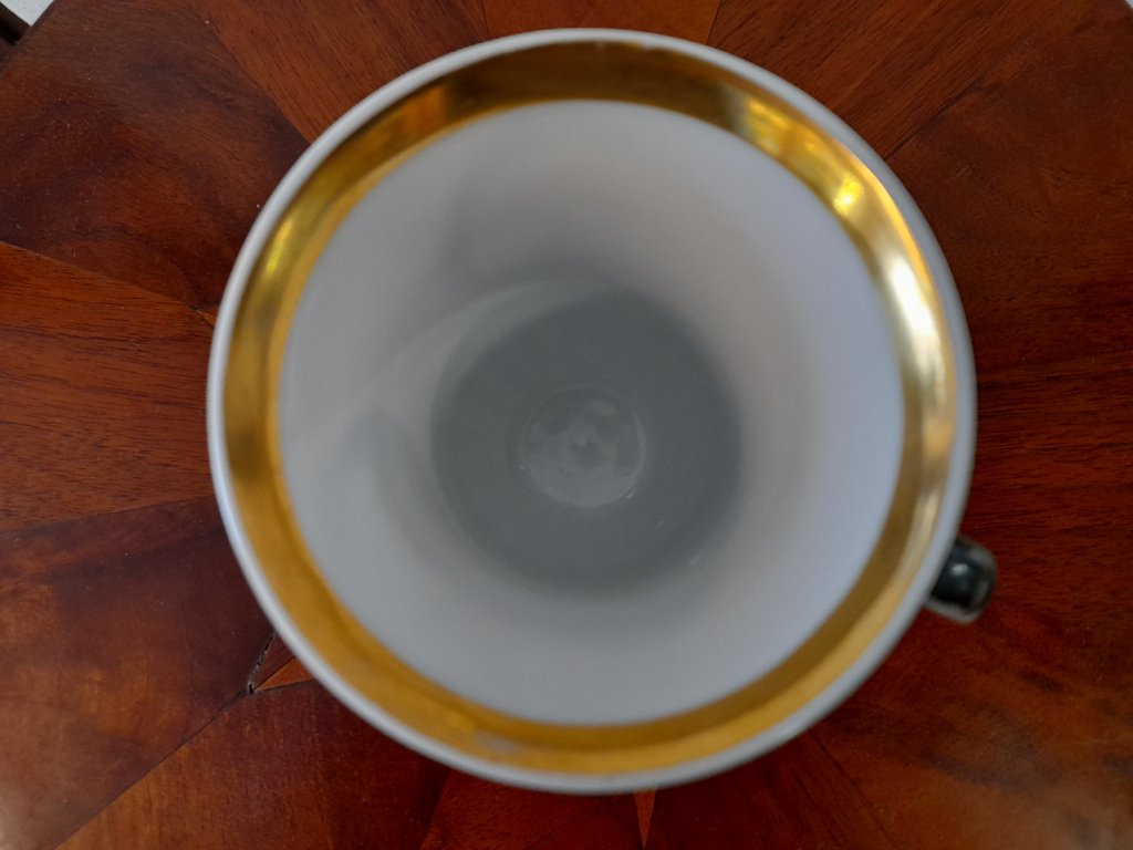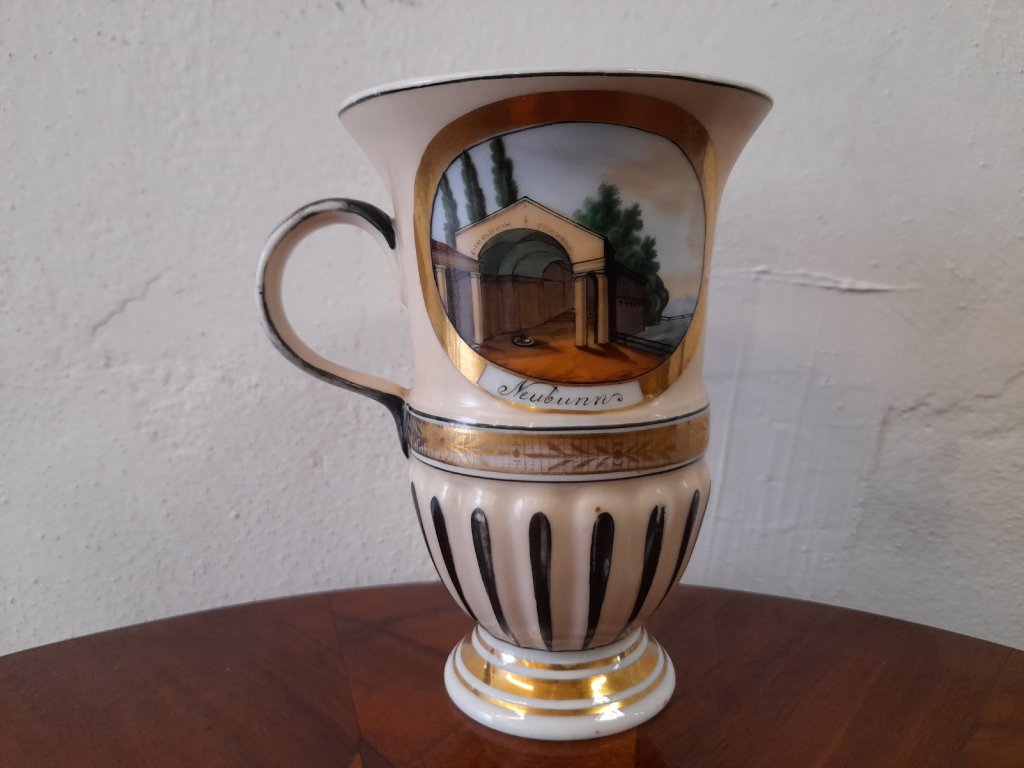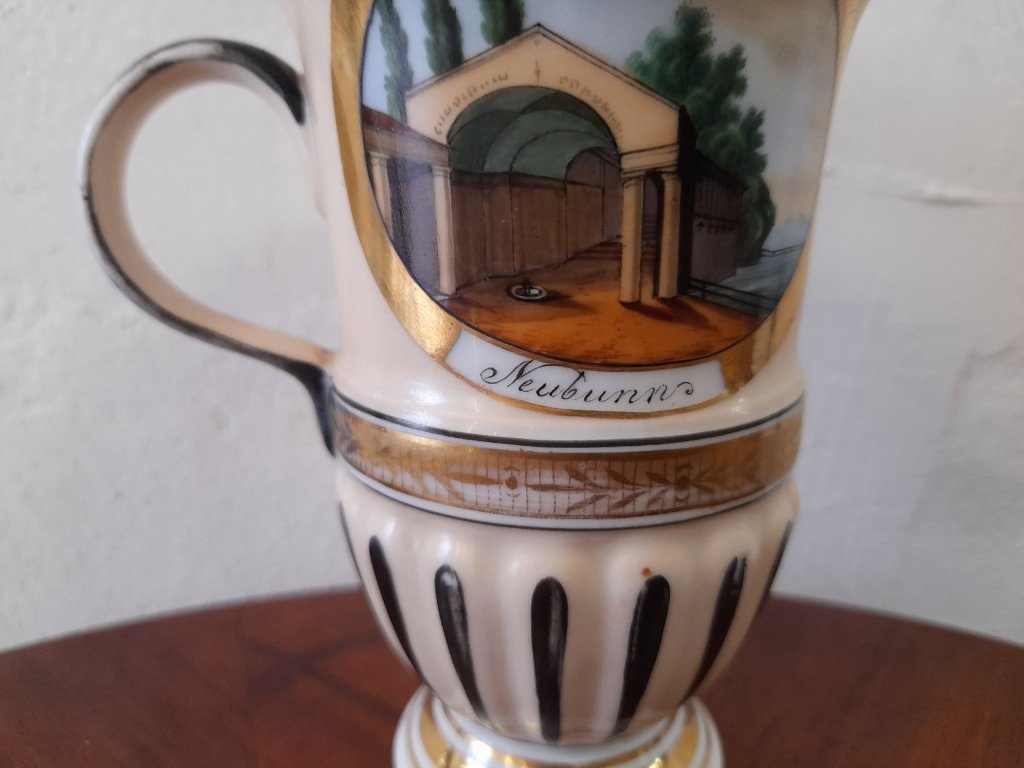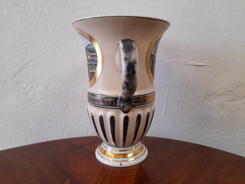 Porcelánový lázeňský pohárek se dvěma vedutami Karlových Varů, značeno, rok cca.1840, ruční malba, výška 11,5 cm, pěkný původní stav.