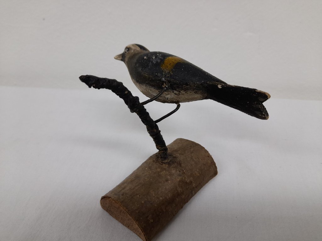 Dřevěný ptáček, rok cca,1920, délka 13,5 cm, dobrý stav.