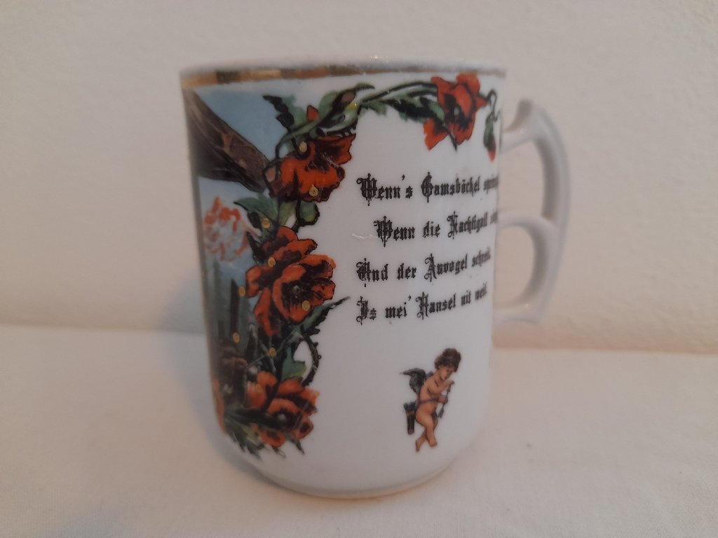 Porcelánový hrnek, rok cca.1900, výška 9 cm, velmi dobrý stav.