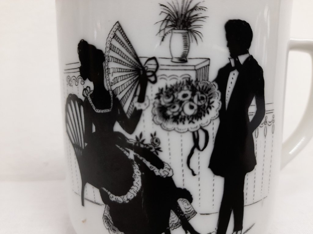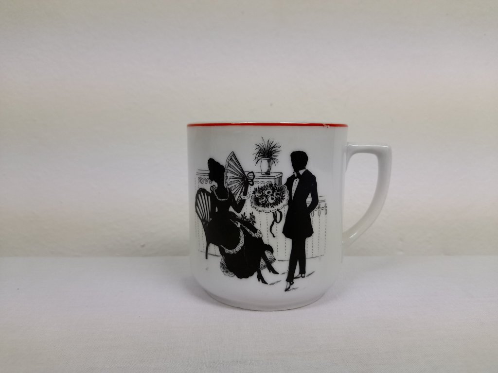 Porcelánový hrnek, rok cca. 1930, motiv rokoko, výška 8,7 cm, velmi dobrý stav.