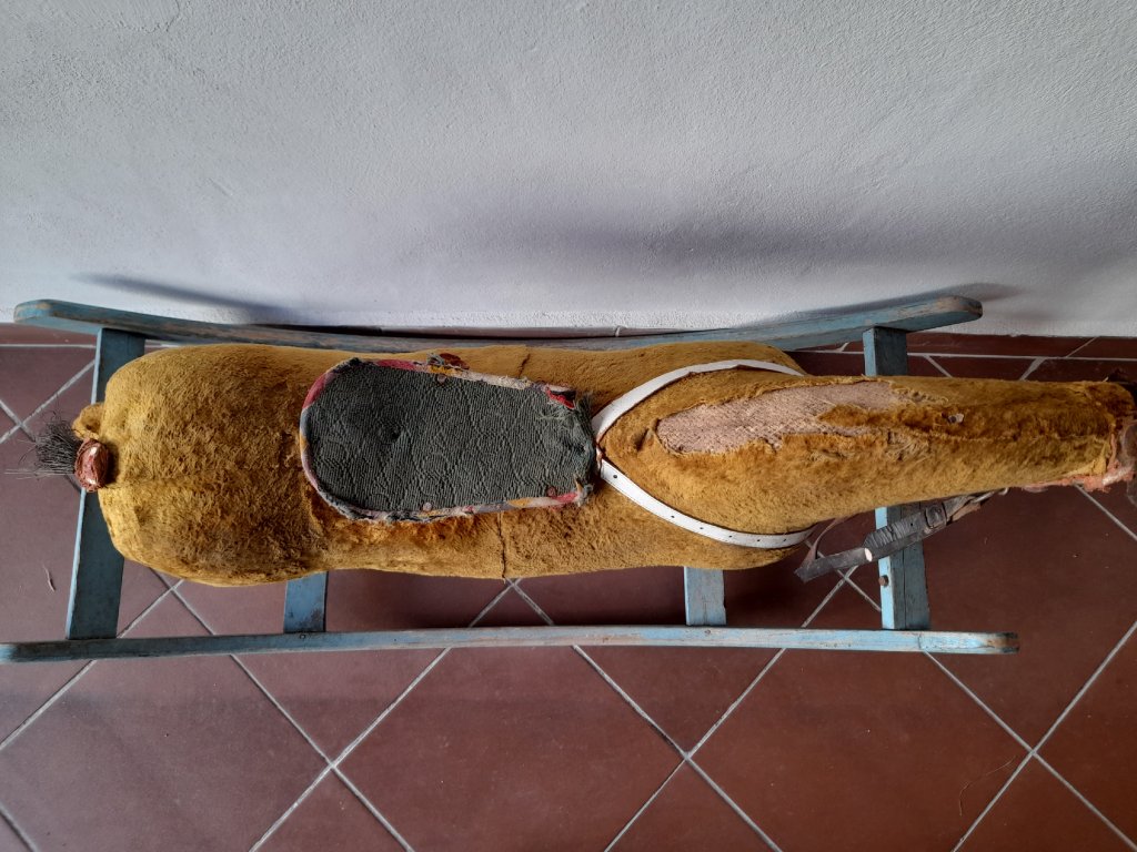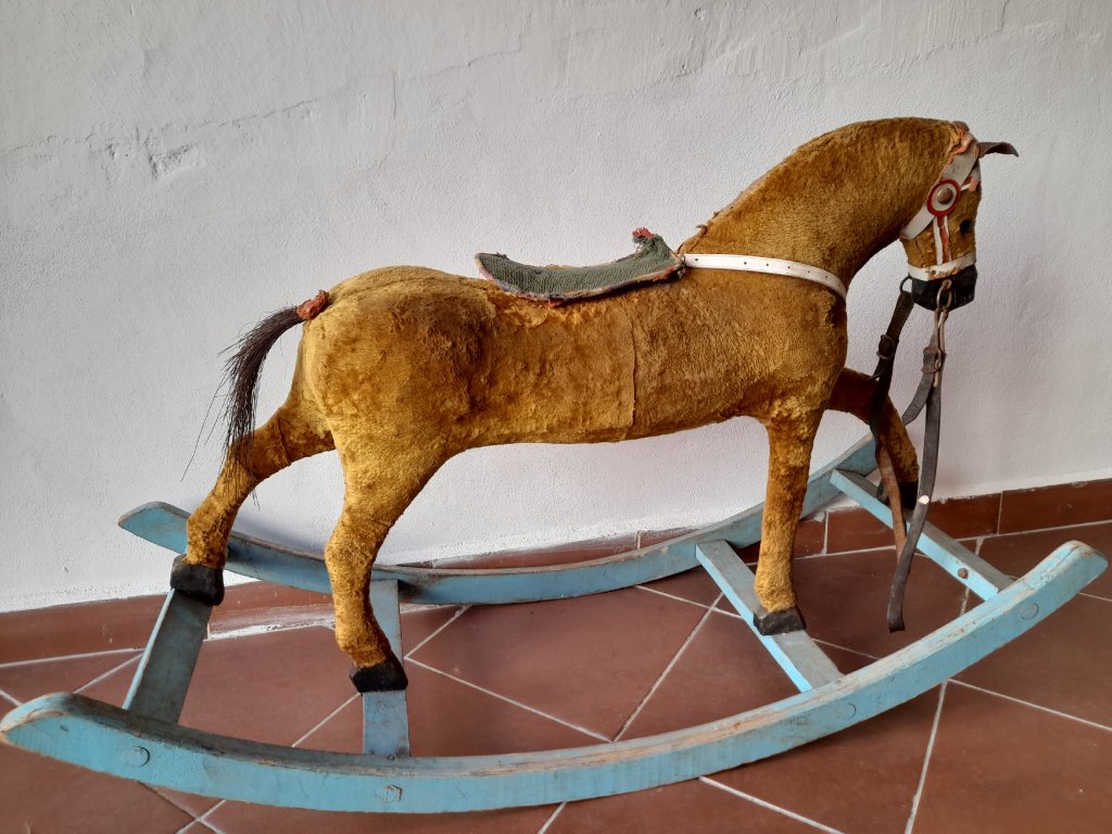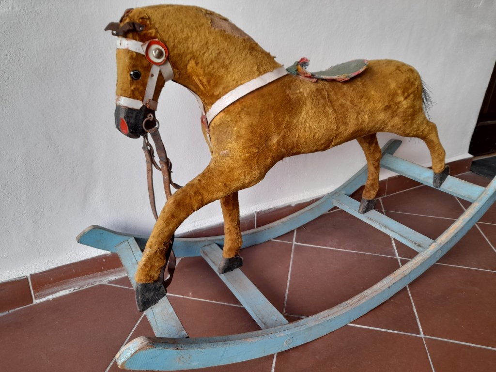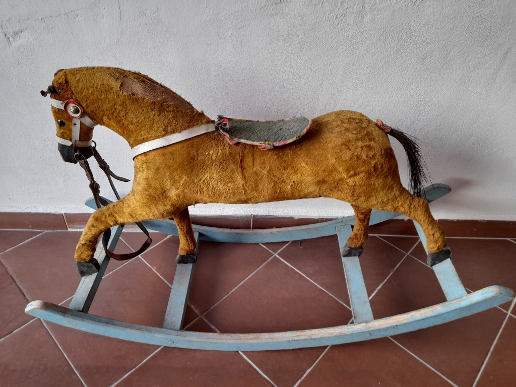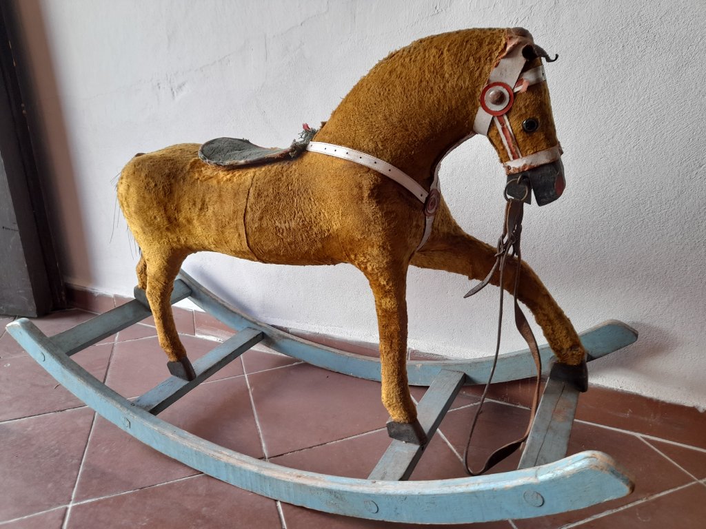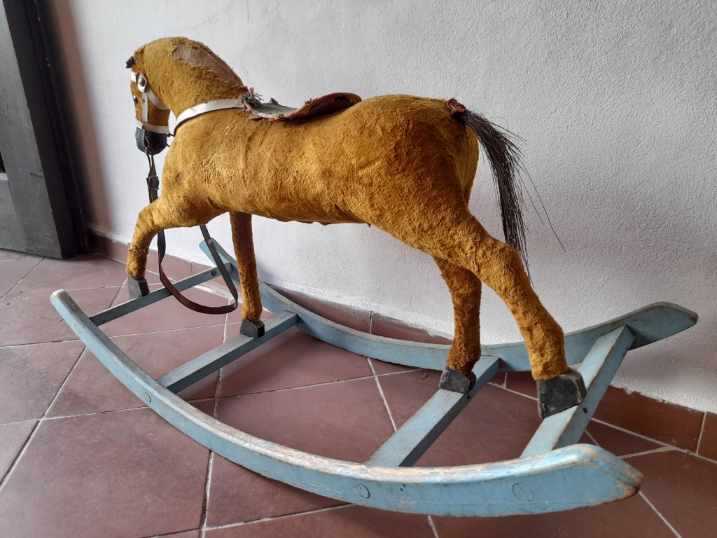 Houpací kůň, rok ca.1920, částečně poškozený, délka spodní části 100 cm.